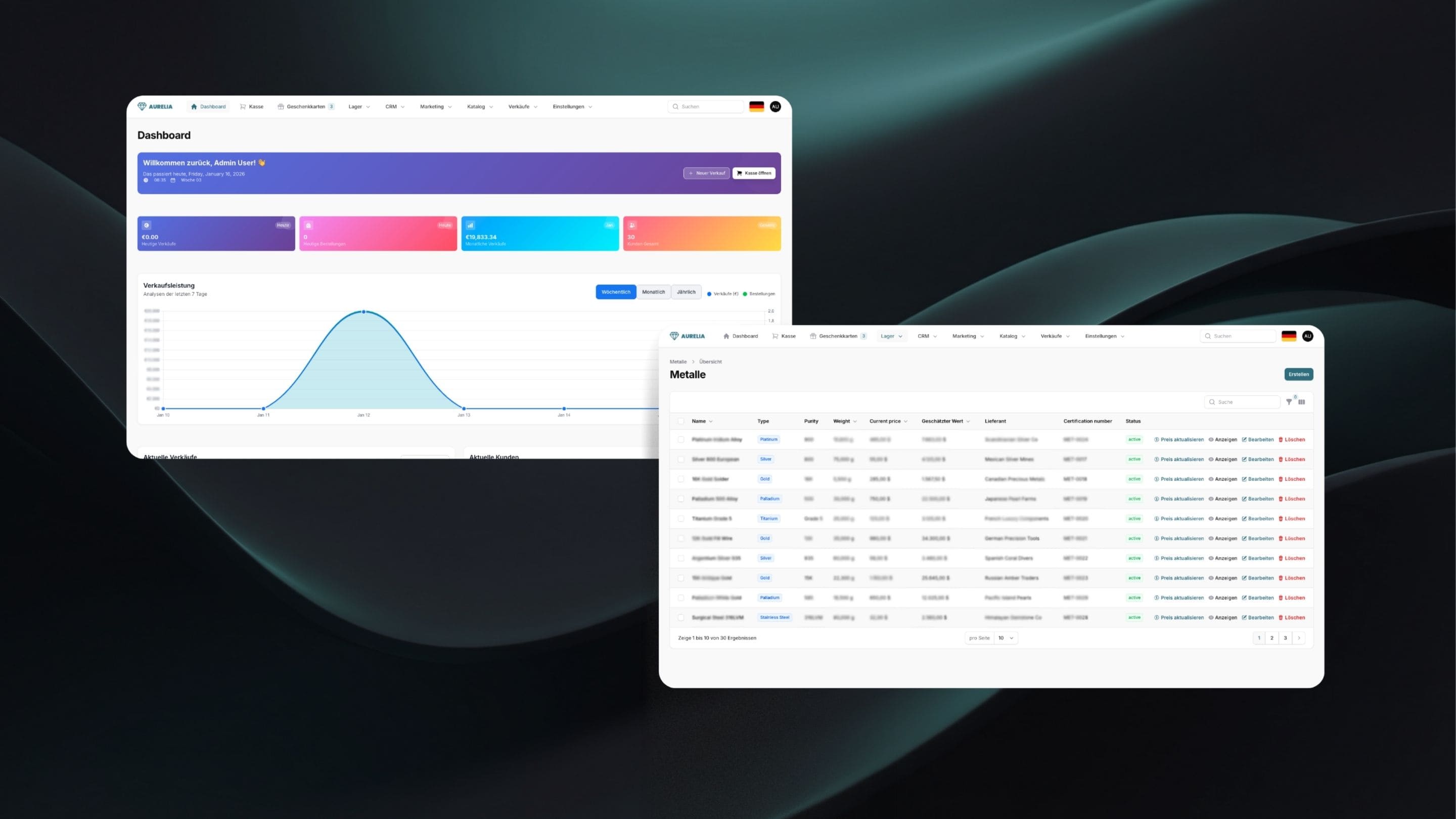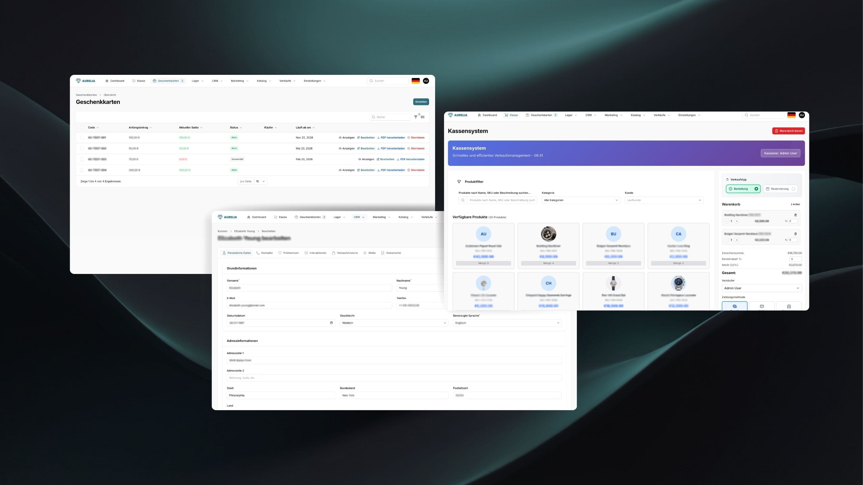 Abbiamo creato “Aurelia Hub”, un CRM su misura progettato per essere la soluzione definitiva e omnicomprensiva per il settore della gioielleria e dell’orologeria nel mercato tedesco. La piattaforma è stata sviluppata con un approccio modulare che permette di coprire ogni aspetto della gestione aziendale, mantenendo al contempo un’interfaccia unificata e intuitiva.